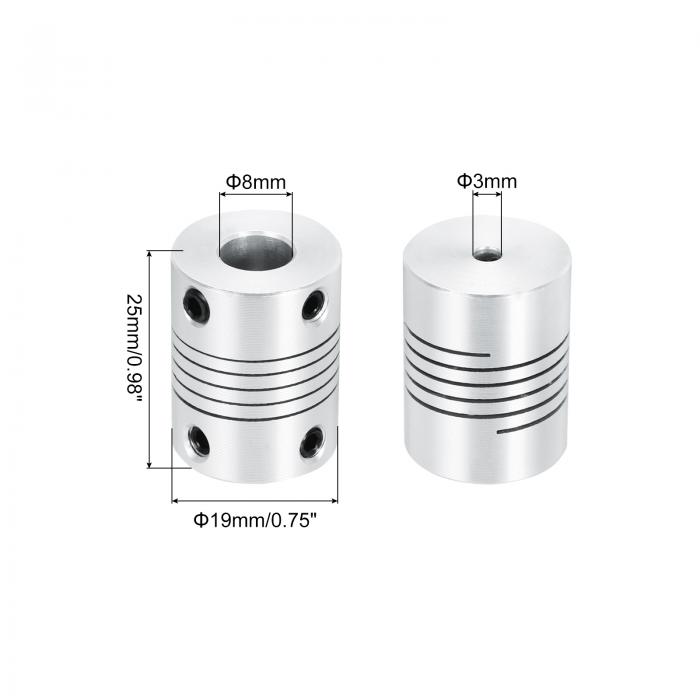 商品詳細 特徴 【属性1】接続ボア径: 3 mmから8mm、全長: 25mm/0.98"、外径: 19mm/0.75"、材質: アルミニウム合金、カラー: シル...